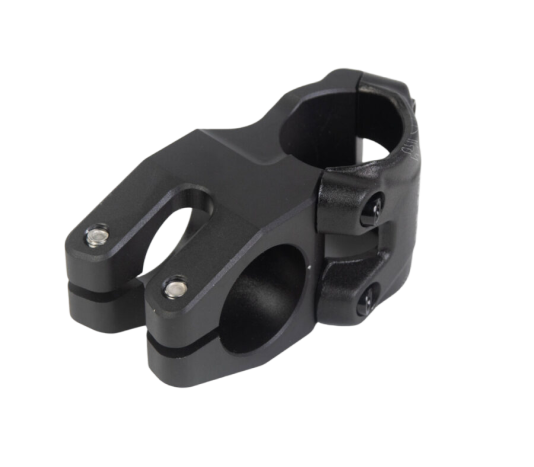 The steering stem mount is typically made from durable materials, such as high-strength steel or aluminum, to withstand the stresses and forces experienced during off-road riding.